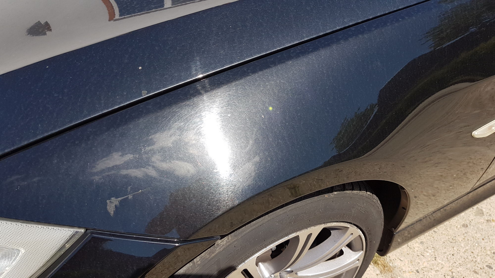 Az autót a napfényes Olaszországból hozták be, ezt mutatja is az első fényszórók állapota, jól bemattultak az erős UV sugárzástól. A fényezés csupa karc, ahogy általában az autók nagy részénél pár év után. Itt is a helytelen mosási technika és a nem megfelelő eszközök használata eredményezte ezt.